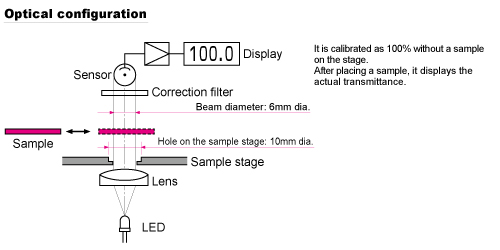 The TLV-304-LC is a compact transmittance meter with a correction filter