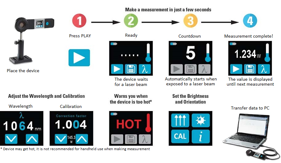 Thanks to a low noise level and high damage threshold, the Pronto can measure powers from 1 W to 250 W